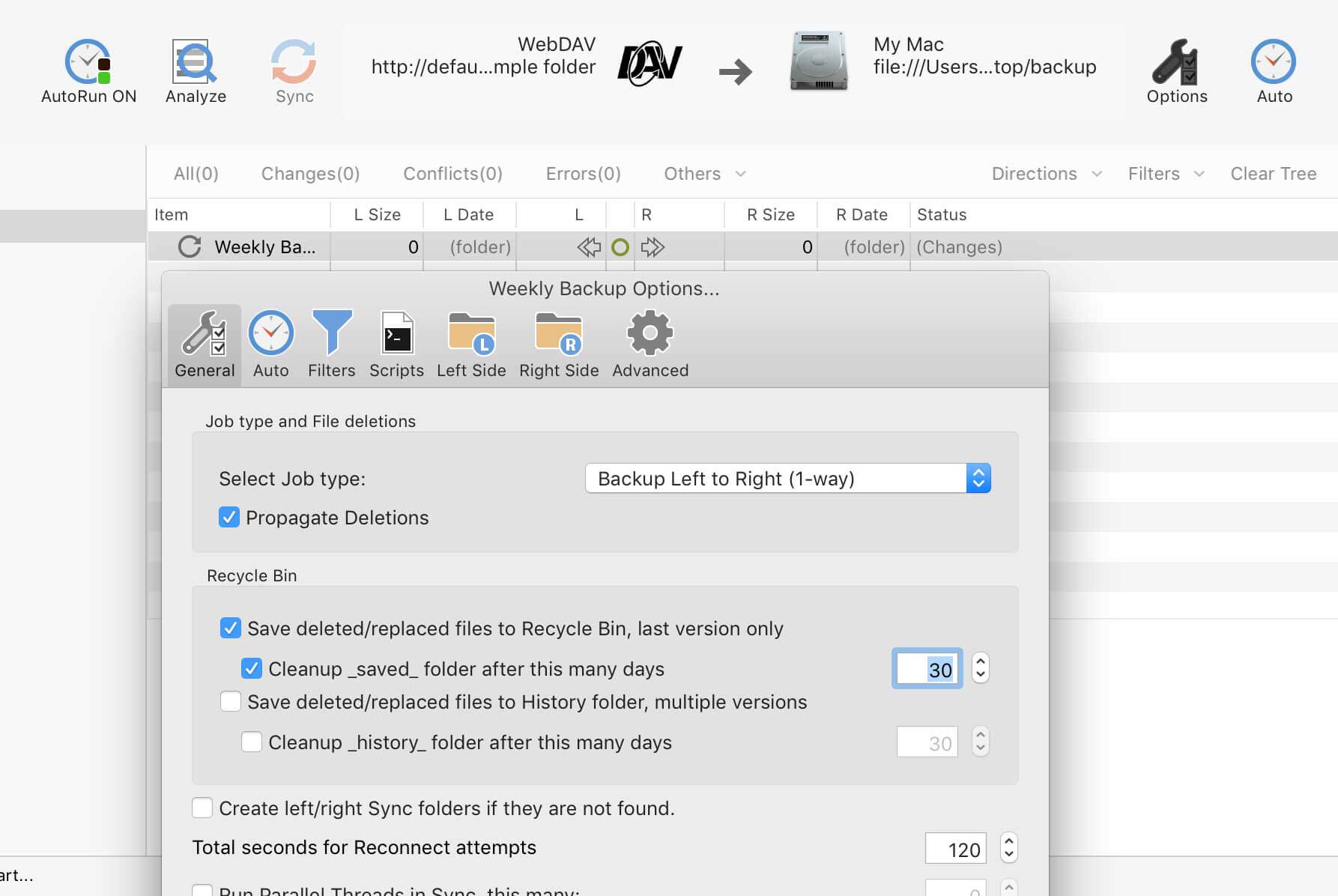 Notice: Remember to enter the right Port number (8443) and to choose “WebDAV HTTPS”.